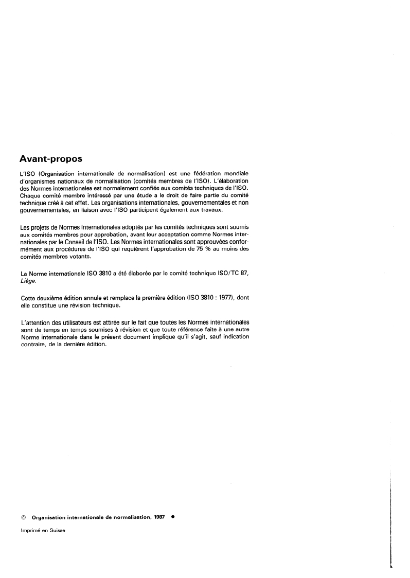 Cette deuxième édition annule et remplace la première édition (ISO 3810 : 1977), dont