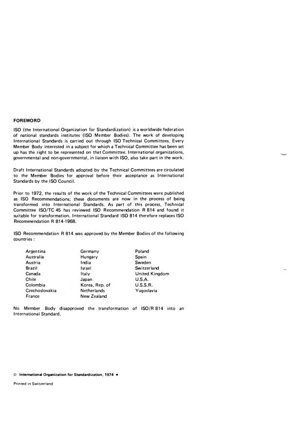 IS0 Recommendation R 814 was approved by the Member Bodies of the following
