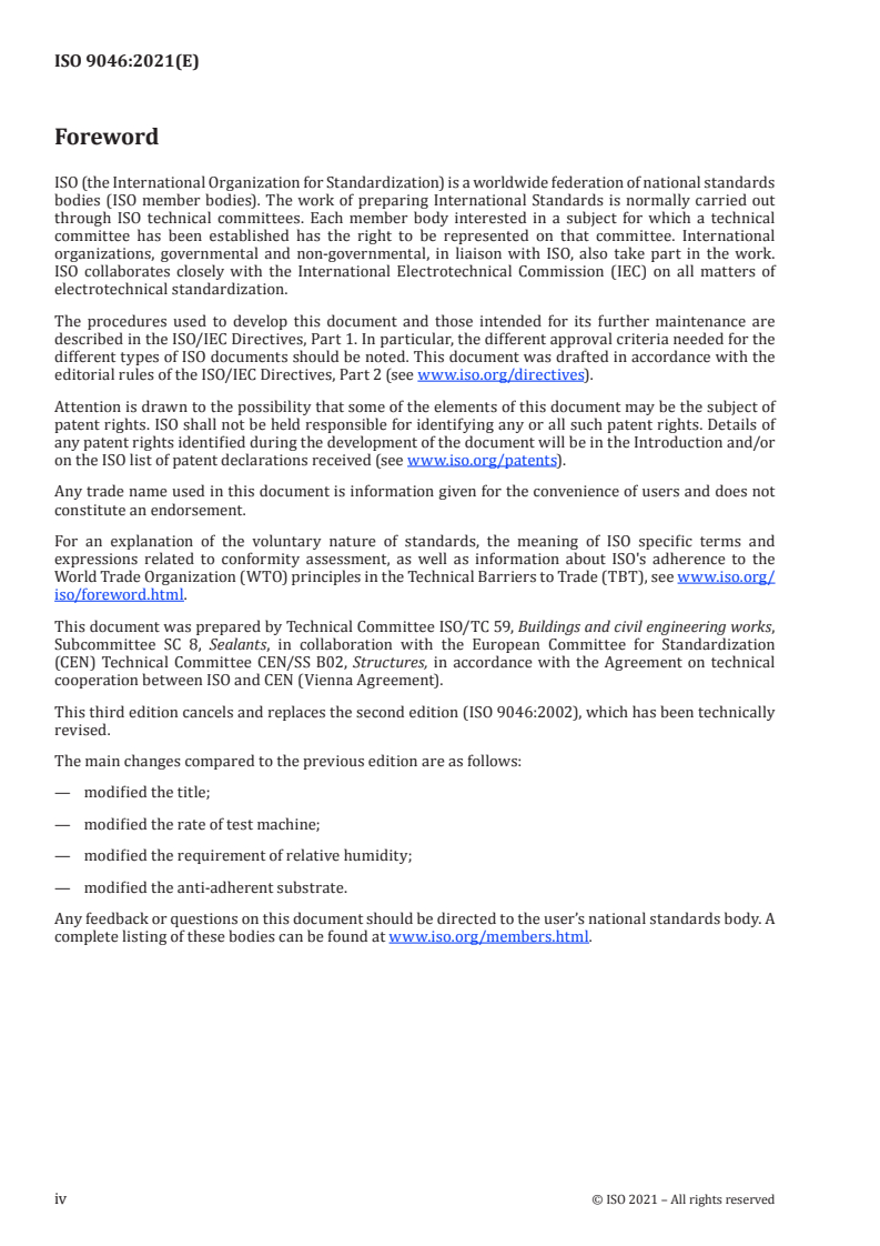 ISO 9046:2021 - Building and civil engineering sealants — Determination of adhesion/cohesion properties at constant temperature Released:3/22/2021
