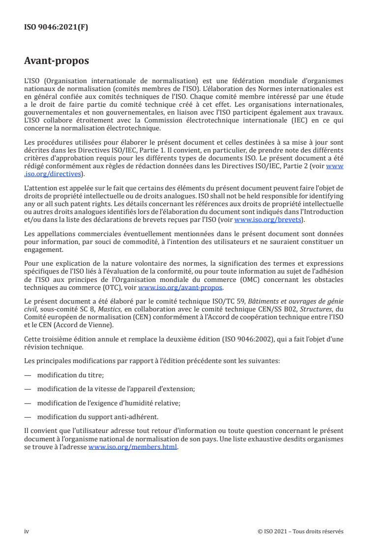 ISO 9046:2021 - Mastics pour le bâtiment et le génie civil — Détermination des propriétés d'adhésivité/cohésion à température constante Released:3/22/2021