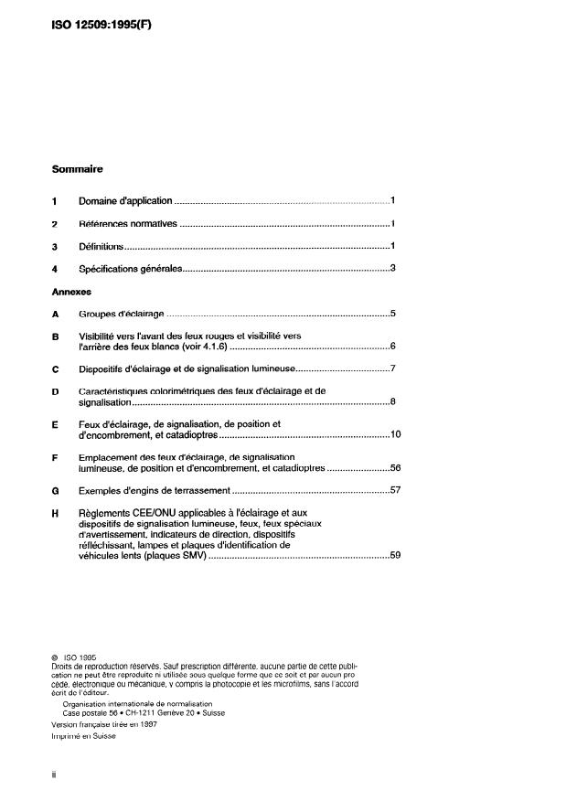 ISO 12509:1995 - Engins de terrassement -- Feux d'éclairage, de signalisation, de position et d'encombrement, et catadioptres