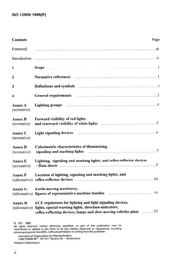 ISO 12509:1995 is a standard published by the International Organization for Standardization (ISO). Its full title is "Earth-moving machinery — Lighting, signalling and marking lights, and reflex-reflector devices". This standard covers: Specifies the minimum requirements for installation and performance of lighting, signalling and marking lights, and reflex-reflector devices on earth-moving machines. Applies to self-propelled wheel or crawler earth-moving machines as defined in ISO 6165, intended for off-road use as well as on-road use. Does not include pedestrian controlled machines.