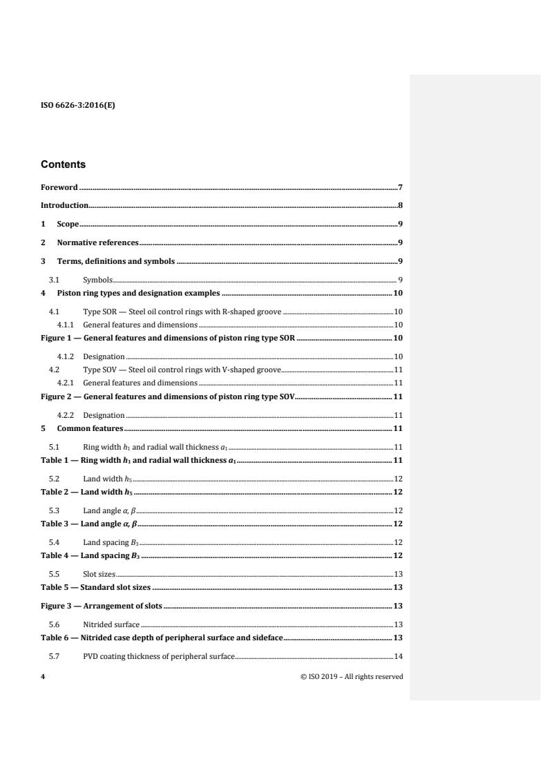 Keywords: ISO 6626-3:2019, piston rings, coil-spring-loaded oil control rings, steel oil control ring, SOR, SOV, ring dimensions, tangential force, nitrided surface, PVD coating, reciprocating internal combustion engines.