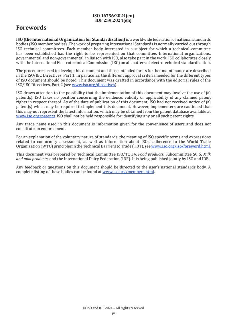- Published jointly by ISO and the International Dairy Federation (IDF) as ISO 16756:2024 / IDF 259:2024.