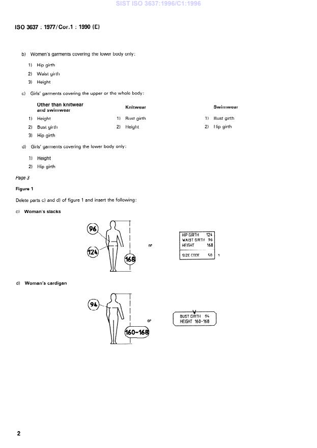 ISO 3637:1977/Cor 1:1990 is a corrigendum published by the International Organization for Standardization (ISO). Its full title is "Size designation of clothes - Women's and girls' outerwear garments - Technical Corrigendum 1". This standard covers: Size designation of clothes - Women's and girls' outerwear garments - Technical Corrigendum 1