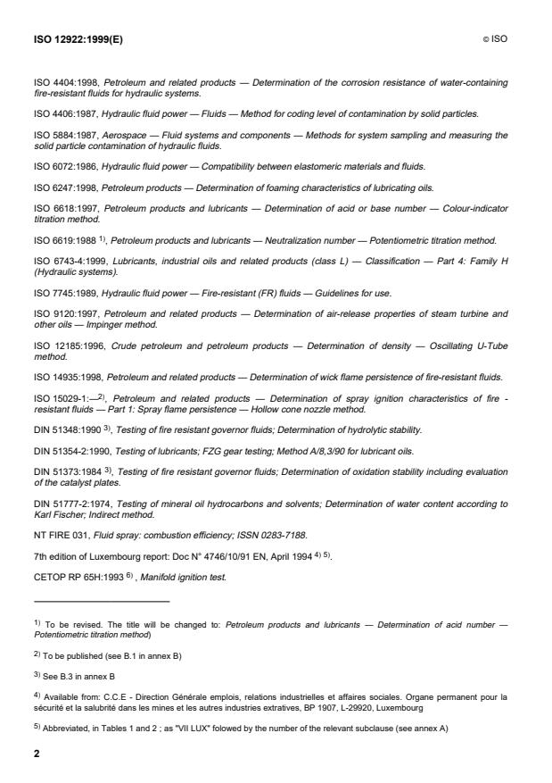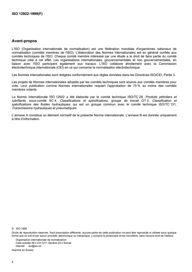 ISO 12922:1999 is a standard published by the International Organization for Standardization (ISO). Its full title is "Lubricants, industrial oils and related products (class L) — Family H (Hydraulic systems) — Specifications for categories HFAE, HFAS, HFB, HFC, HFDR and HFDU". This standard covers: La présente Norme internationale spécifie les exigences relatives aux fluides hydrauliques difficilement inflammables pour les applications générales industrielles dans les systèmes hydrostatiques et les systèmes hydrodynamiques. Elle n'est pas destinée aux applications aéronautiques ni à celles qui concernent la transmission de puissance. Elle fournit des informations aux fournisseurs et utilisateurs de fluides hydrauliques difficilement inflammables et donne des principes directeurs aux constructeurs de systèmes hydrauliques. La présente Norme internationale est rédigée sous une forme générale de façon à ce que son application puisse être adaptée aux différentes conditions climatiques rencontrées à travers le monde. Elle stipule également les exigences applicables aux fluides hydrauliques difficilement inflammables au moment de leur livraison. L'ISO 6743-4 établit la classification des fluides utilisés dans les applications hydrauliques. Parmi les différentes catégories traitées dans l'ISO 6743-4, la présente spécification ne couvre que les suivantes: HFAE, HFAS, HFB, HFC, HFDR et HFDU. NOTE Pour les besoins de la présente Norme internationale, les expressions «% (m/m)» et «% (V/V)» sont utilisées pour représenter respectivement la fraction massique et la fraction volumique d'un produit.