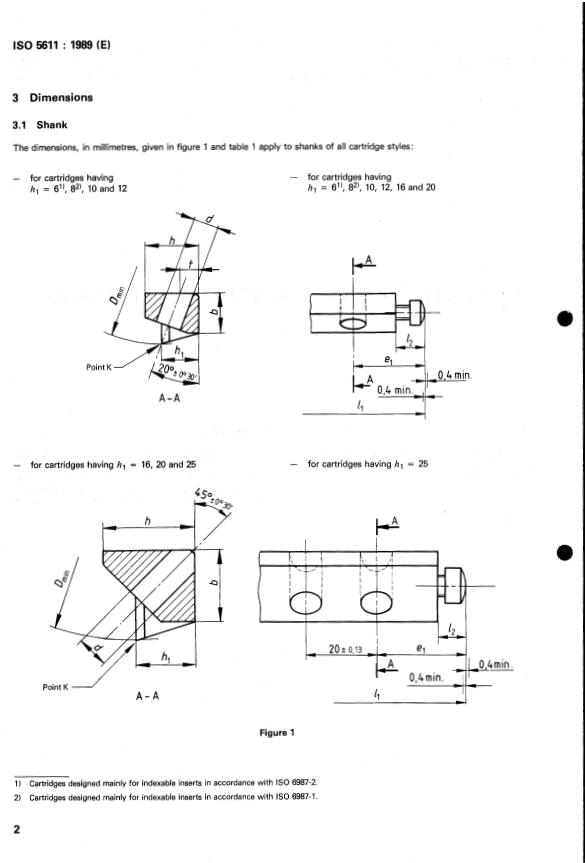 The dimensions, in millimetres, given in figure 1 and table , apply to shanks of all cartridge styles: