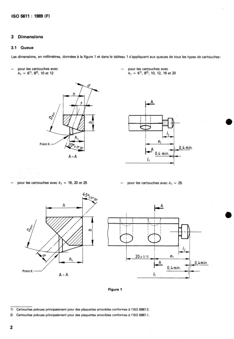 Les dimensions, en millimètres, données a la figure 1 et dans le tableau 1 s’appliquent aux queues de tous les types de cartouches: