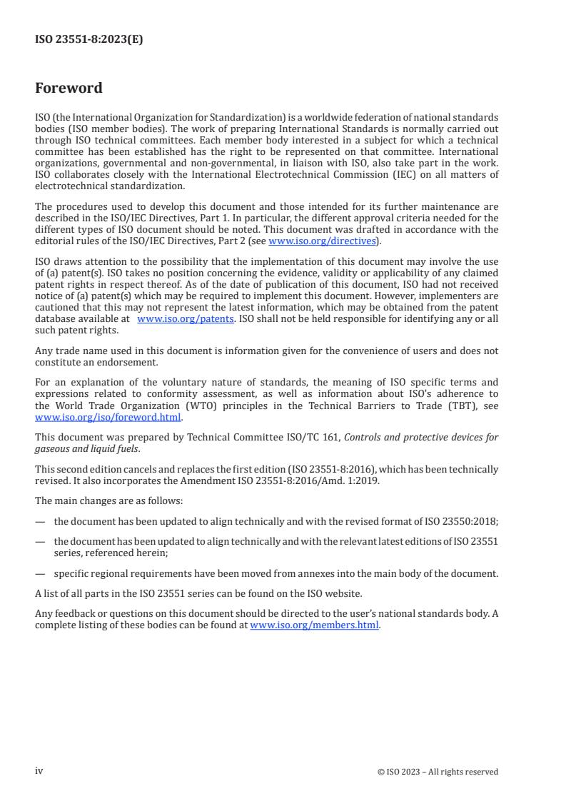 Use ISO 23551-8:2023 when writing technical specifications, preparing conformity documentation, developing test plans or selecting components to ensure safe, compliant multifunctional controls for gas-burning equipment.