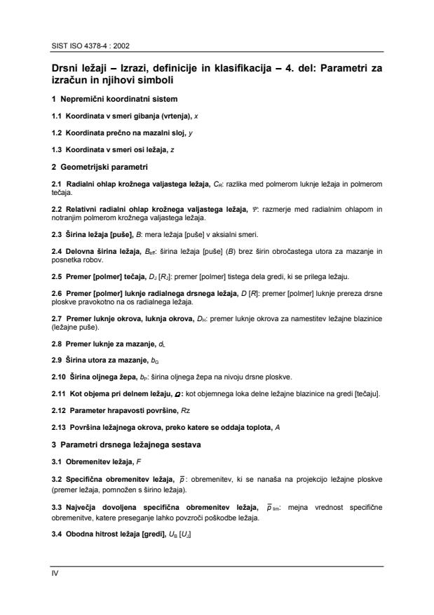 Drsni ležaji - Izrazi, definicije in klasifikacija - 4. del: Parametri za izračun in njihovi simboli
