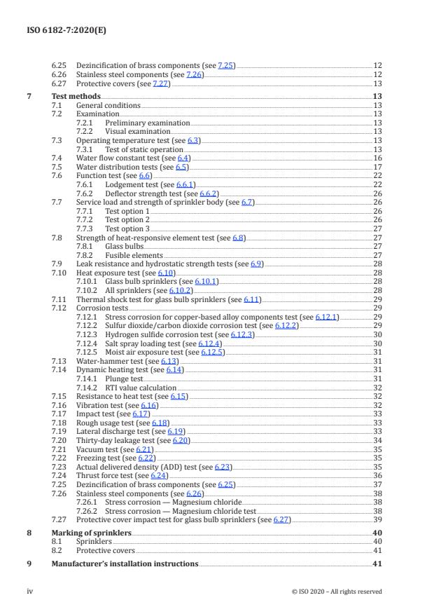 ISO 6182-7:2020 is a standard published by the International Organization for Standardization (ISO). Its full title is "Fire protection — Automatic sprinkler systems — Part 7: Requirements and test methods for early suppression fast response (ESFR) sprinklers". This standard covers: This document specifies performance requirements, test methods and marking requirements for pendent early suppression fast response (ESFR) sprinklers. NOTE This document currently provides requirements for K202 and K242 ESFR pendent sprinklers.