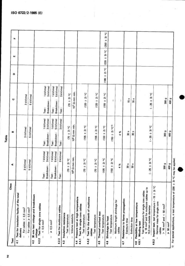 Unscreened low-tension cables — Part 2: Cable classes, applicable tests and special requirements