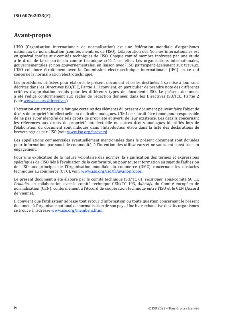 - ISO 6076 was prepared by ISO/TC 61 (Plastics) in collaboration with CEN/TC 193 (Adhesives).
