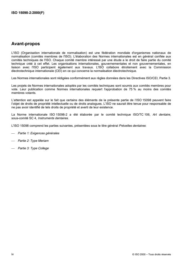 L'ISO 15098 comprend les parties suivantes, présentées sous le titre général Précelles dentaires: