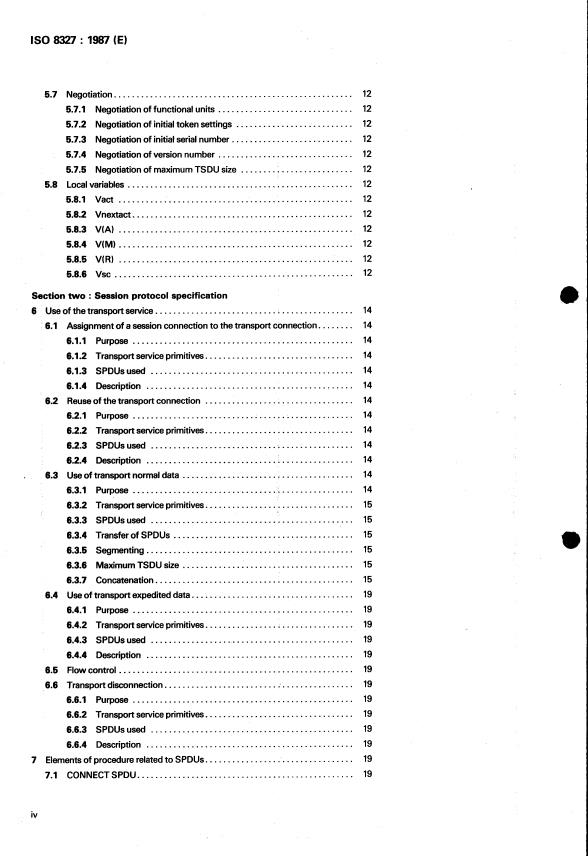 ISO 8327:1987 is a standard published by the International Organization for Standardization (ISO). Its full title is "Information processing systems — Open Systems Interconnection — Basic connection oriented session protocol specification". This standard covers: Information processing systems — Open Systems Interconnection — Basic connection oriented session protocol specification
