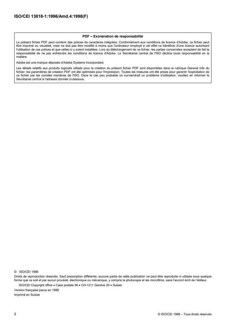 responsabilité de ne pas enfreindre les conditions de licence d'Adobe. Le Secrétariat central de l'ISO décline toute responsabilité en la