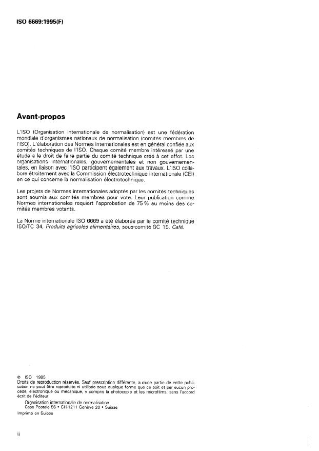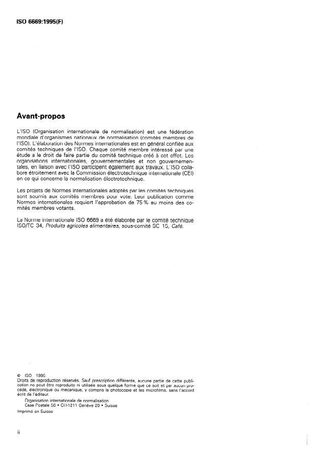 ISO 6669:1995 - Café vert et café torréfié -- Détermination de la masse volumique sans tassement des grains entiers (méthode pratique)