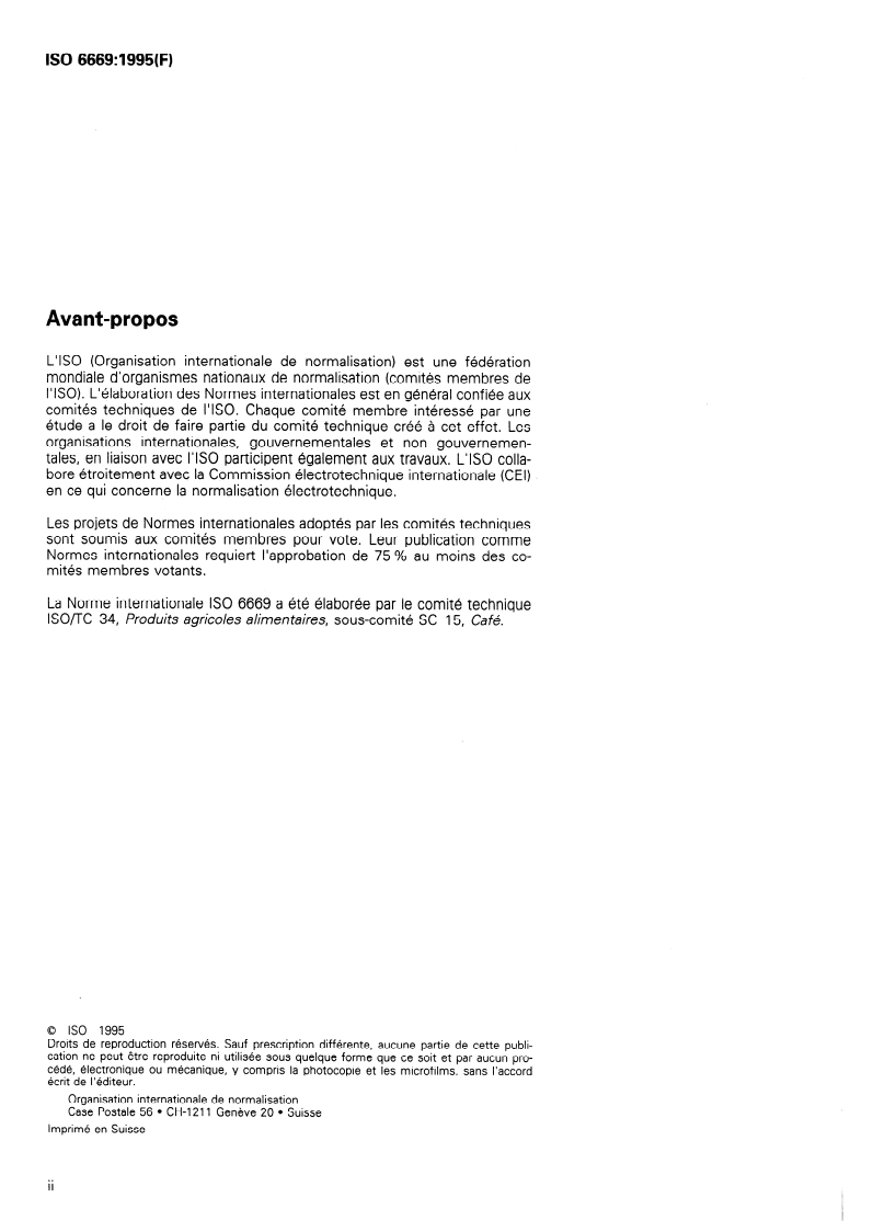ISO 6669:1995 - Café vert et café torréfié — Détermination de la masse volumique sans tassement des grains entiers (méthode pratique) Released:9/14/1995