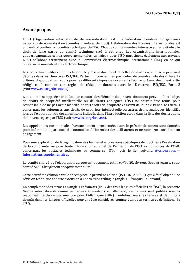 ISO 10254:2016 - "Air cargo and ground equipment - Vocabulary" is an International Standard from ISO/TC 20/SC 9 that defines the terms and abridged definitions used in the air cargo and aircraft ground equipment domain. The second edition (2016) replaces ISO 10254:1995, expands the content and provides a trilingual (English/French/German) reference. Terms are listed alphabetically in the English text, with an index to identify equivalent French and German expressions. A notable editorial point: the standard uses the commercial term “weight” throughout instead of the technically correct term “mass” to align with common industry usage.