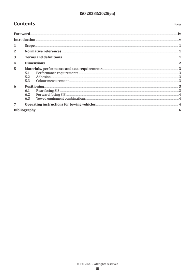 Keywords: ISO 20383:2025, Speed Identification Sign, SIS, agricultural field equipment, specified ground speed, decal durability, positioning, ISO 29862, ISO 2810.