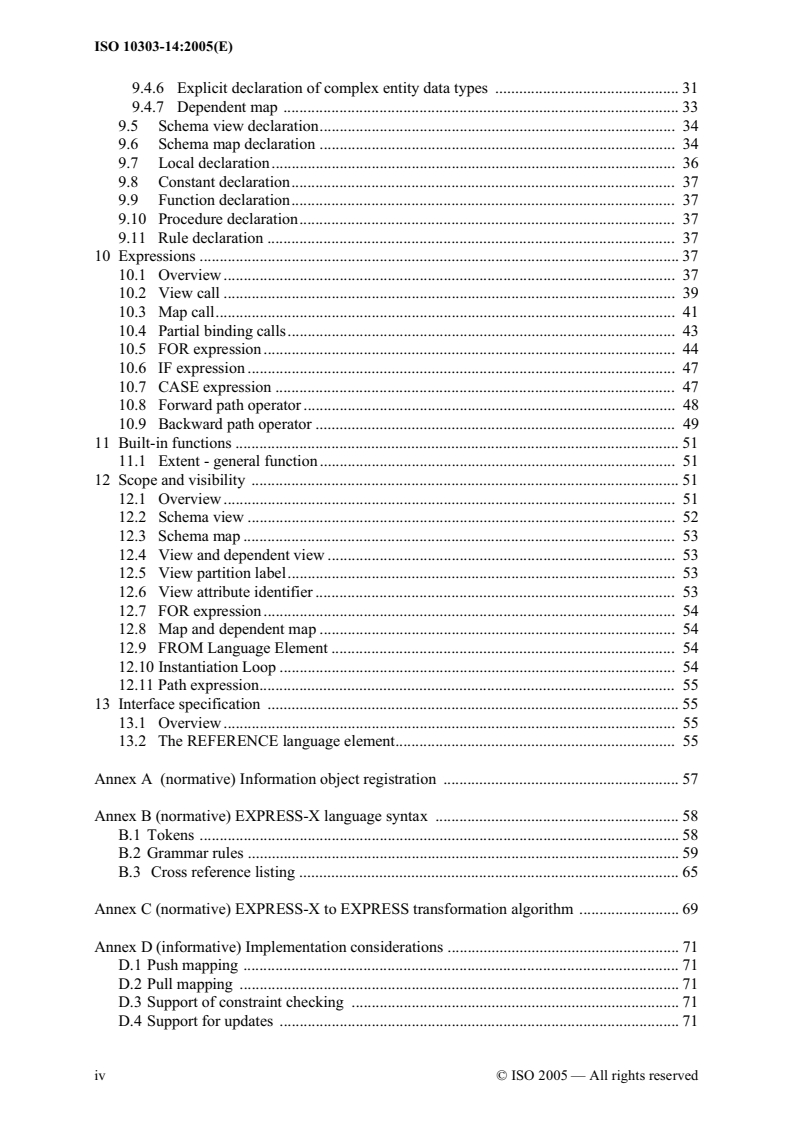 - Alternate views and notations: Specifies how to define alternate views of data defined by an EXPRESS schema and offers an alternate notation for application protocol mapping tables.