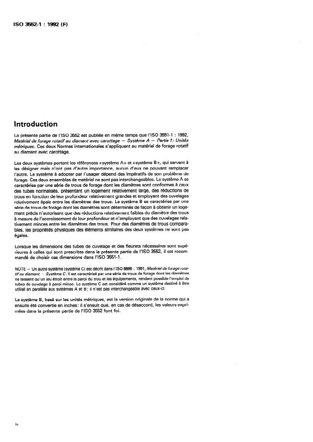 ISO 3552-1:1992 - Matériel de forage rotatif au diamant avec carottage -- Systeme B