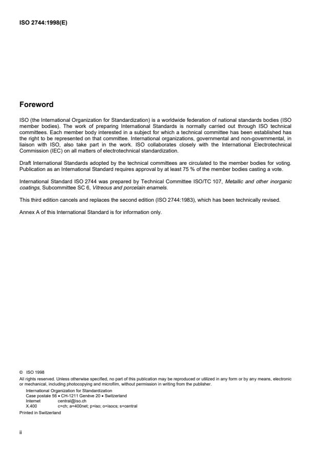 International Standard ISO 2744 was prepared by Technical Committee ISO/TC 107, Metallic and other inorganic