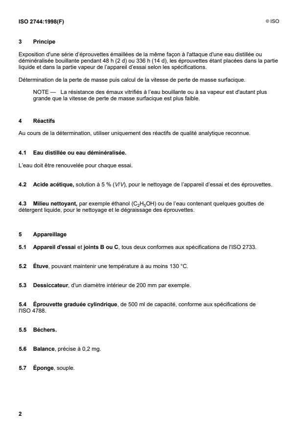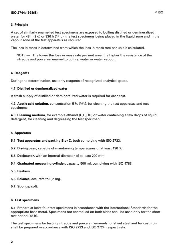 ISO 2744:1998 - Vitreous and porcelain enamels -- Determination of resistance to boiling water and water vapour