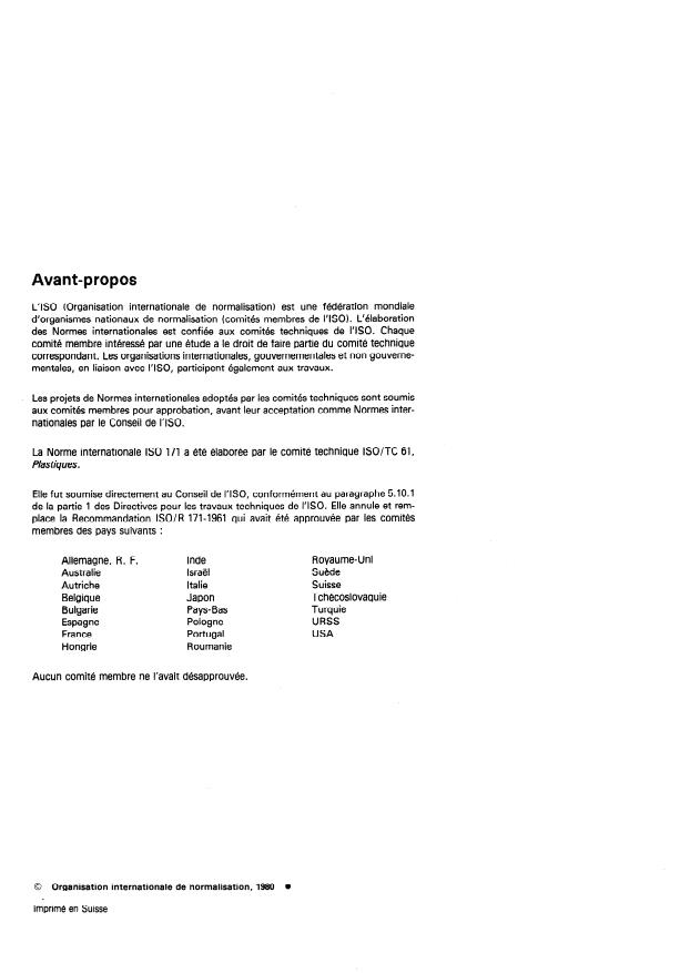La Norme internationale ISO 171 a été élaborée par le comité technique ISO/TC 61,