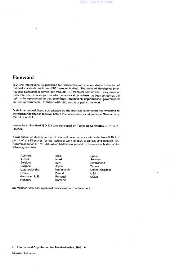 International Standard IS0 171 was developed by Technical Committee ISO/TC 61,