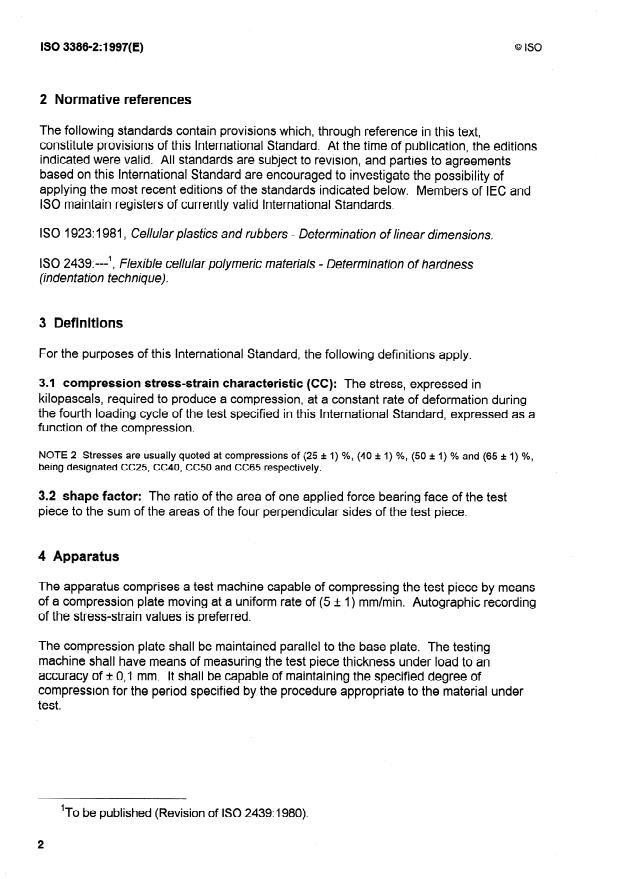 ISO 3386-2:1997 - Flexible cellular polymeric materials -- Determination of stress-strain characteristics in compression