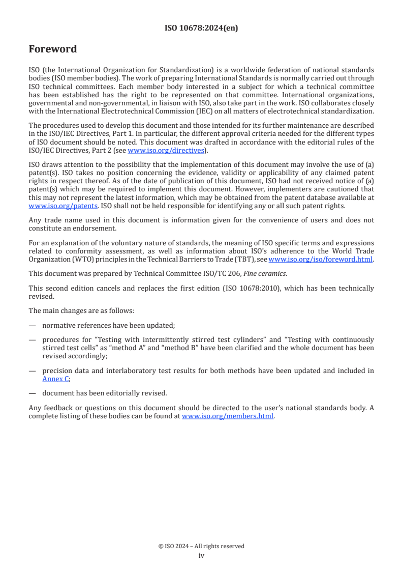 ISO 10678:2024 - Fine ceramics (advanced ceramics, advanced technical ceramics) — Determination of photocatalytic activity of surfaces in an aqueous medium by degradation of methylene blue Released:10/24/2024