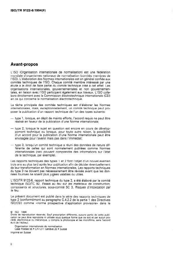 ISO/TR 9122-6:1994 - Essais de toxicité des effluents du feu