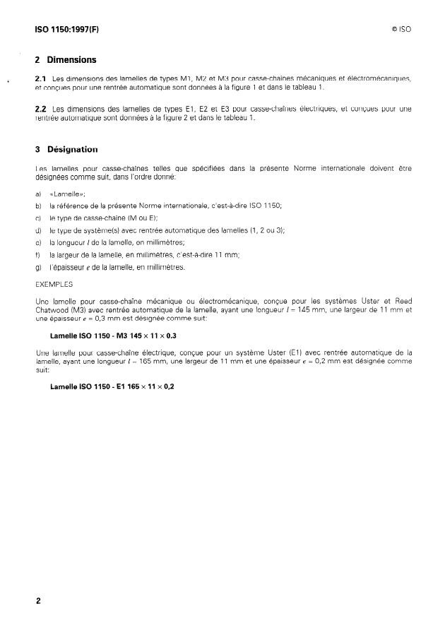 ISO 1150:1997 - Matériel pour l'industrie textile -- Lamelles pour casse-chaînes pour machines a tisser avec rentrée automatique des lamelles