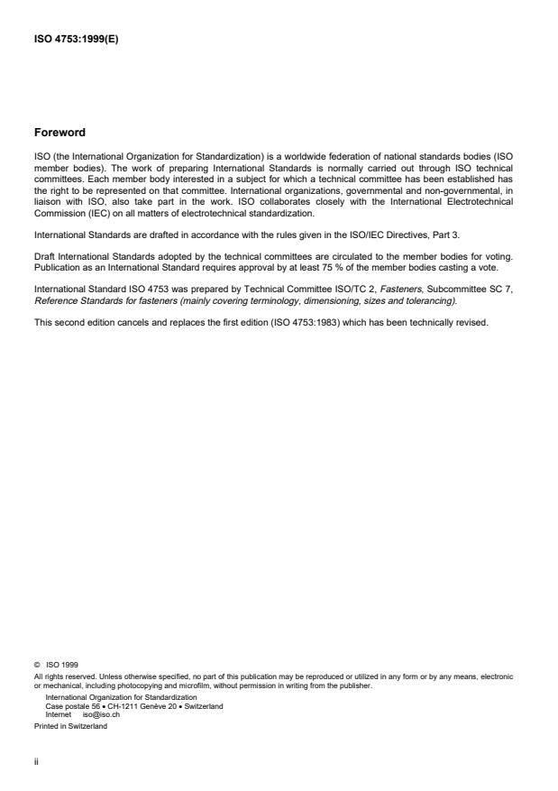 International Standard ISO 4753 was prepared by Technical Committee ISO/TC 2, Fasteners, Subcommittee SC 7,