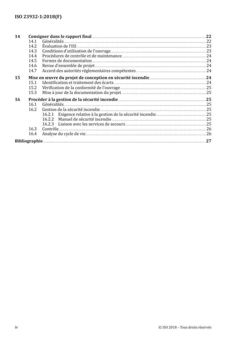 Le présent document énonce les principes généraux et les exigences pour l'ISI. Il est destiné à être utilisé par des professionnels impliqués dans 1) la conception en sécurité incendie axée sur les performances (d'ouvrages neufs et existants), 2) la mise en œuvre de projets de conception en sécurité incendie, et 3) la gestion de la sécurité incendie. Le présent document n'est pas destiné à représenter un guide technique détaillé de conception, mais comprend les éléments principaux requis pour aborder les différentes étapes et leurs corollaires dans un processus de conception en sécurité incendie. Le présent document comprend également les éléments principaux liés à la mise en œuvre de projets de conception en sécurité incendie et à la gestion de la sécurité incendie. Le présent document n'est pas seulement destiné à être utilisé seul, mais également avec un ensemble cohérent de documents ISI proposant des méthodes pour la conception, la mise en œuvre et la gestion de l'ingénierie de sécurité incendie axée sur les performances. Les objectifs de sécurité incendie (OSI) couverts par le présent document comprennent: — la sécurité des personnes; — la protection des biens; — la continuité des activités; — la préservation de l'environnement; — la conservation du patrimoine. Les principes généraux et les exigences de l'ISI peuvent être appliqués à toutes les configurations d'ouvrage, c'est-à-dire des bâtiments ou autres structures (par exemple plates-formes en mer; ouvrages de génie civil tels que tunnels, ponts, et mines; et moyens de transport, tels que véhicules à moteur et bateaux), mais peuvent ne pas être applicables à des sites de construction. Dans la mesure où les réglementations prescriptives relatives à la conception en sécurité incendie coexistent avec la conception axée sur les performances, le présent document admet que des conceptions en sécurité incendie conformes aux réglementations prescriptives peuvent devenir la référence d'une comparaison avec des conceptions d'ingénierie pour des ouvrages.