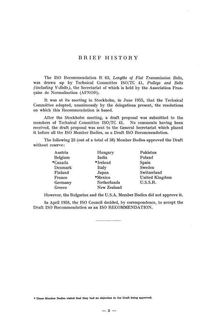 The IS0 Recommendation R 63, Lengths of Flat Transmission Belts,