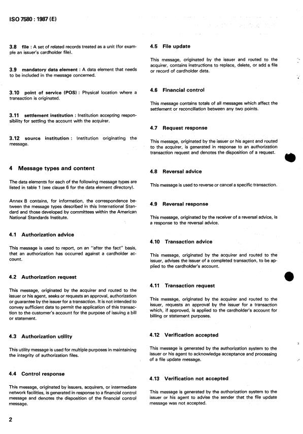 ISO 7580:1987 - Identification cards — Card originated messages — Content for financial transactions Released:12/17/1987