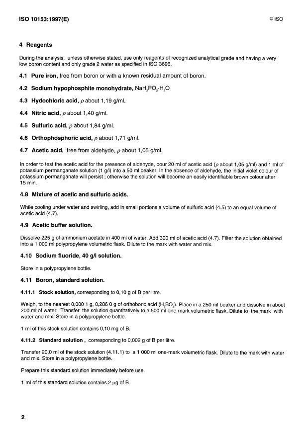 ISO 10153:1997 is a standard published by the International Organization for Standardization (ISO). Its full title is "Steel - Determination of boron content - Curcumin spectrophotometric method". This standard covers: Steel - Determination of boron content - Curcumin spectrophotometric method