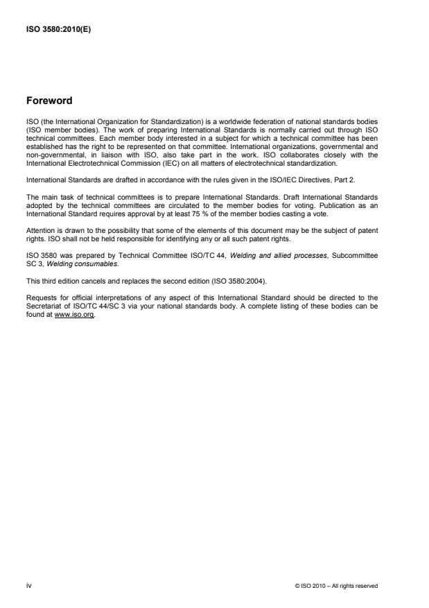 ISO 3580:2010 - Welding consumables -- Covered electrodes for manual metal arc welding of creep-resisting steels -- Classification