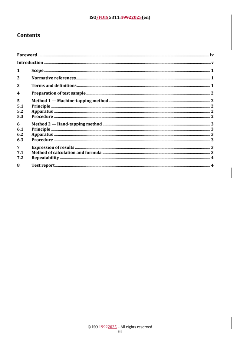 REDLINE ISO/FDIS 5311 - Fertilizers — Determination of bulk density (tapped) Released:11/24/2025