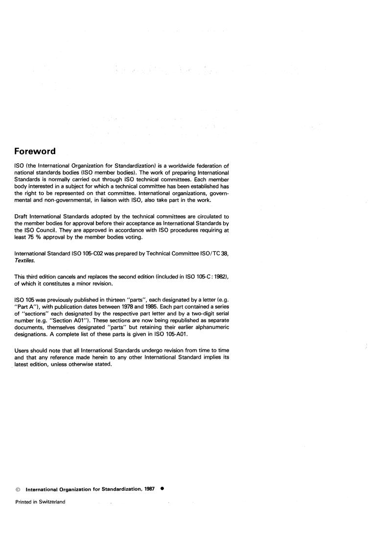 ISO 105-C02:1987 - Textiles — Tests for colour fastness — Part C02: Colour fastness to washing : Test 2 Released:12/17/1987