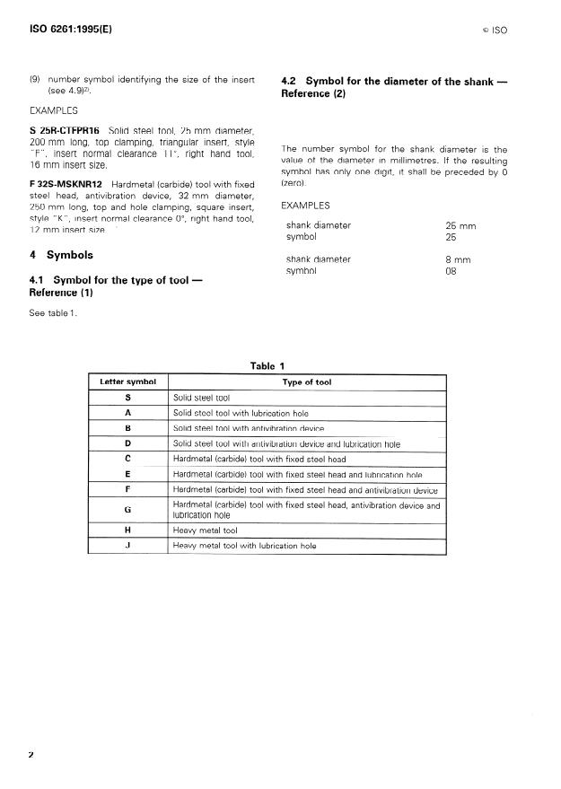 ISO 6261:1995 - Boring bars (tool holders with cylindrical shank) for indexable inserts -- Designation