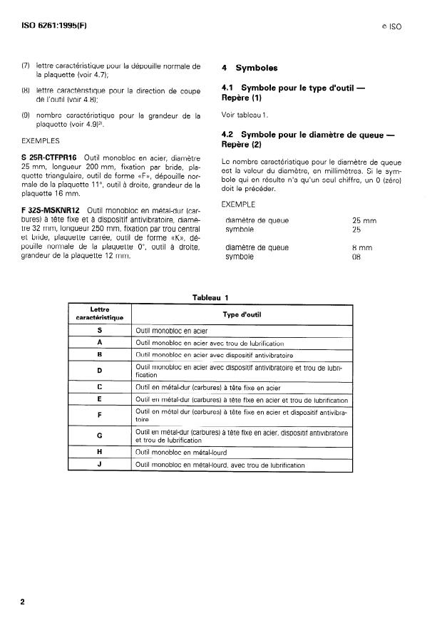 pour la désignation des dimensions et autres caracté- lettre caractéristique pour la forme de l’outil (voir