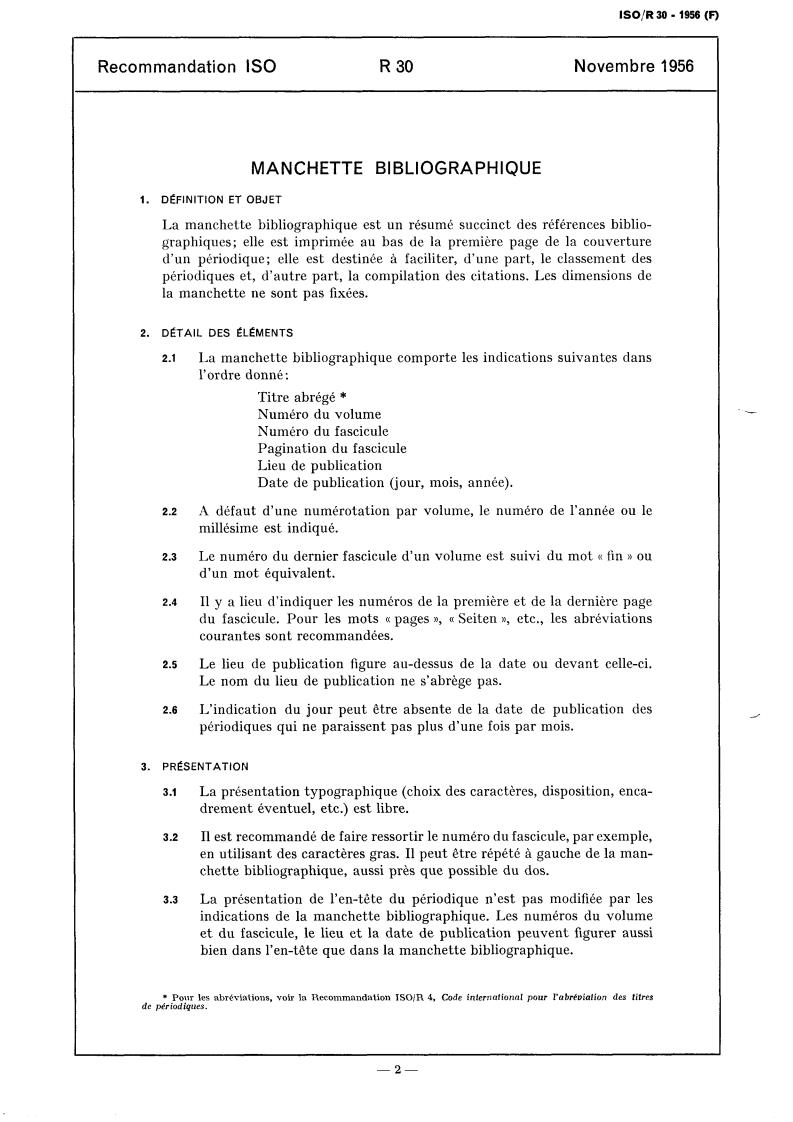Recommandation IS0 R 30 Novembre 1956