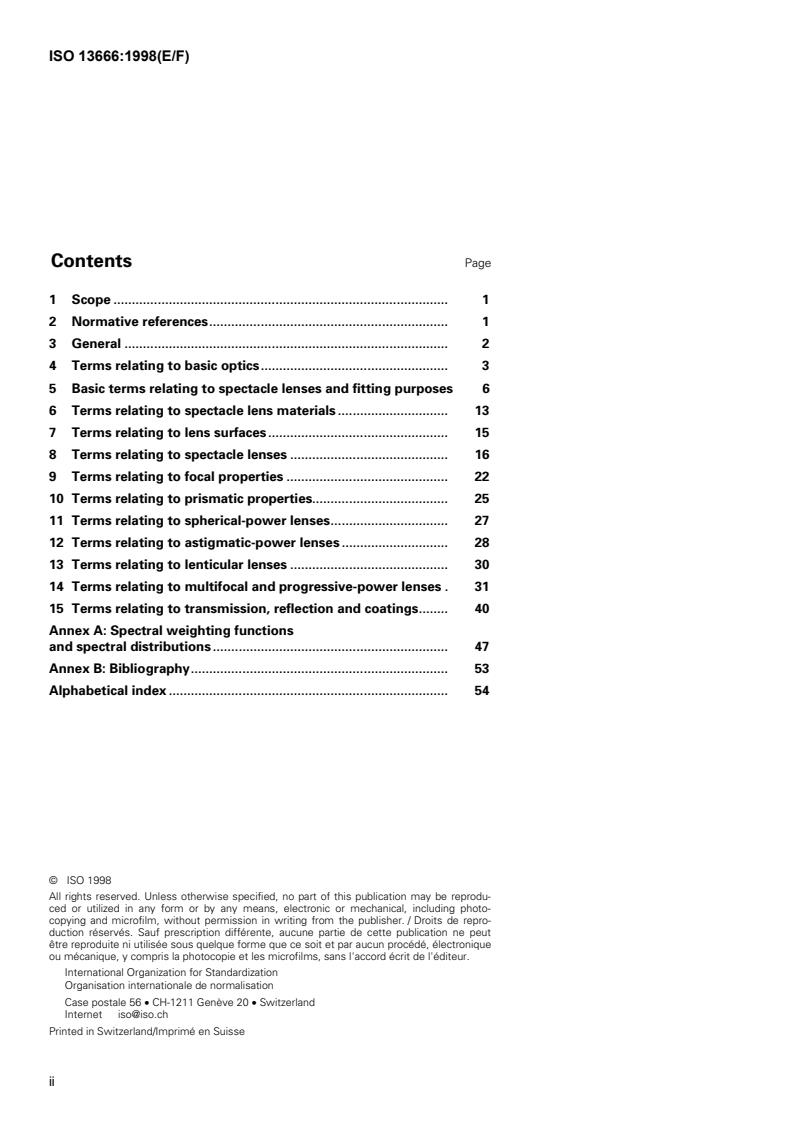 ISO 13666:1998 is a standard published by the International Organization for Standardization (ISO). Its full title is "Ophthalmic optics — Spectacle lenses — Vocabulary". This standard covers: Ophthalmic optics — Spectacle lenses — Vocabulary
