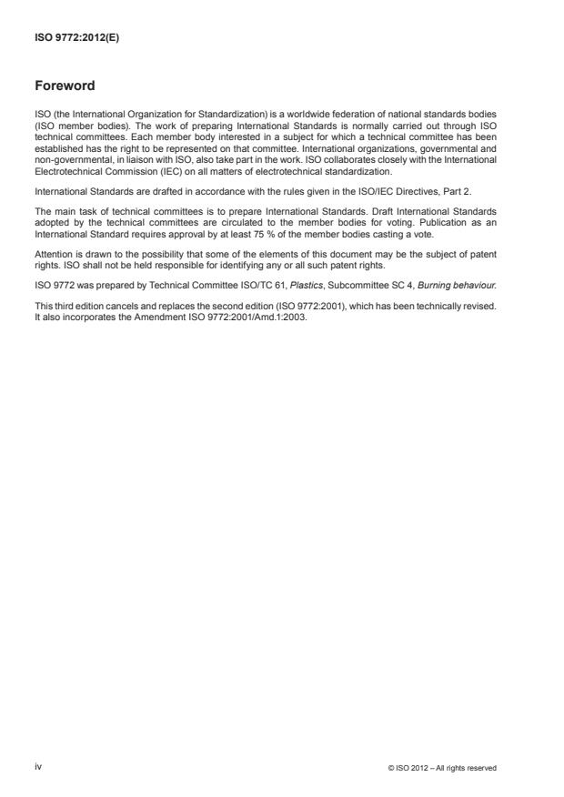 ISO 9772:2012 is classified under the following ICS (International Classification for Standards) categories: 13.220.40 - Ignitability and burning behaviour of materials and products; 83.100 - Cellular materials. The ICS classification helps identify the subject area and facilitates finding related standards.