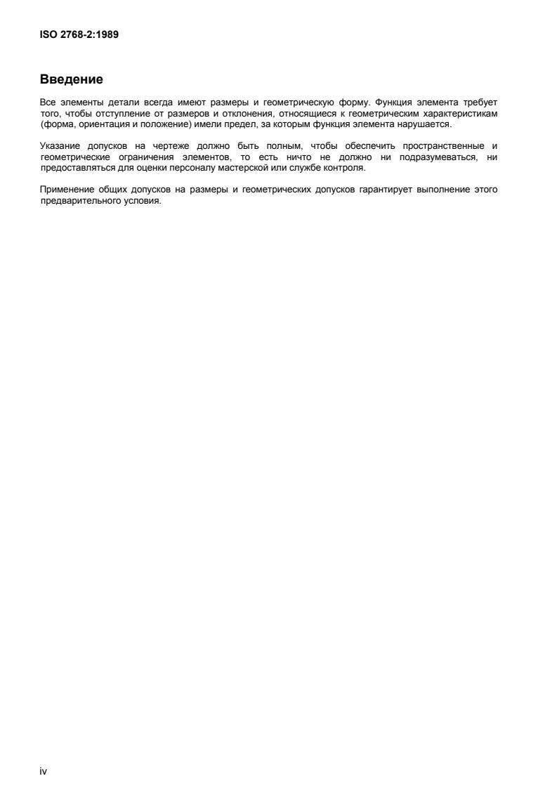 Iso 2768-2 : 1989 (El Introduction All features on component parts always have a size and a geometrical shape. For the deviation of size and for the deviations of the geometrical characteristics (form, orientation and location) the function of the part requires limitations which, when exceeded, impair this function. The tolerancing on the drawing should be complete to ensure that the elements of size and geometry of all features are controlled, i.e. nothing shall be implied or left to judge- ment in the workshop or in the inspection department. The use of general tolerances this prerequisite is met. for size and geometry simplifies the task of ensuring that