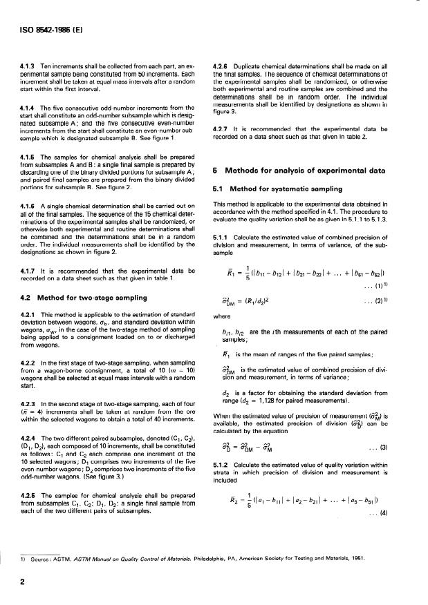 Keywords: ISO 8542:1986, manganese ores, chromium ores, sampling precision, quality variation, mass-basis systematic method, two-stage sampling, standard deviation, consignment sampling.