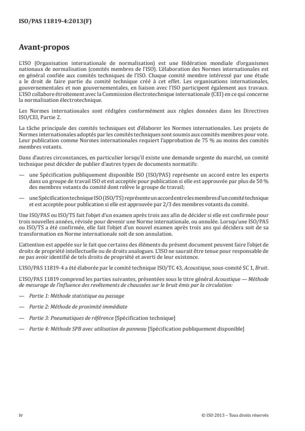 L’ISO/PAS 11819-4 a été élaborée par le comité technique ISO/TC 43, Acoustique, sous-comité SC 1, Bruit.